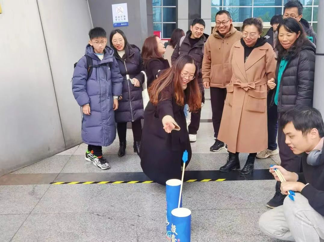 游园会充分发掘运用中华文化资源,彰显龙年元素,开设了“龙飞凤舞”“百发百中”等传统技艺体验活动。老师们通过用毛笔书写对联、贴福字,寄托新年心愿,为新年祈福;优雅的投壶游戏带领大家重温古代文人雅集的射礼仪节,切身体验传承已久的民间乐趣,在活动中重温中华文化与传统习俗。