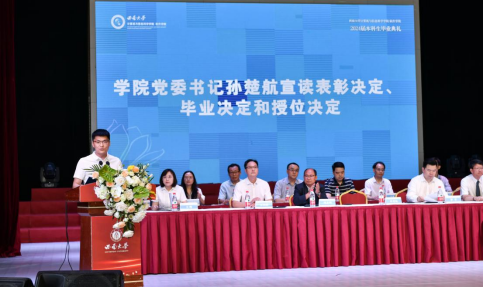 教师代表,自动化系主任范子川老师回顾了与成人影院们在计信院共同经历的成长历程,强调了在智能时代不断学习和探索的重要性。他鼓励毕业生们怀抱爱国之心,永葆求知之心,养就淡然之态,在未来的道路上坚定前行,勇于创新,积极应对挑战,成就更加光辉灿烂的未来。