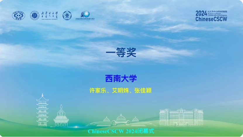 近日,由中国计算机学会(CCF)协同计算专委会组织的ChineseCSCW2024协同智能大数据竞赛在内蒙古自治区呼和浩特市成功举办。我院“复杂系统与交叉科学应用”团队研究生组队参赛,获得一等奖。该团队研究生继2021年、2022年后,第三次获得此会议比赛的一等奖,展现了在社会计算领域的研究实力和人才培养水平。