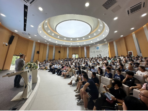 基于一特、三力、六维的新工科融通式人才培养范式将为新同学们提供优质的成长发展和条件保障。随后奥克兰大学理学部(国际)副部长Sebastian Link 向同学们作成人影院