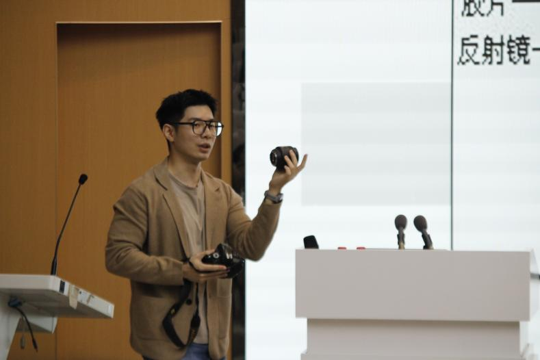 李文启学长从相机的结构与主要参数引入,强调快门时间、光圈、感光度及拍摄模式对拍摄质量的关键作用。他细致介绍了摄影的景别分类,包括远景至特写,讨论了构图技巧,如三分法、对称法、引导线及框架式构图等,同时提及了线条、形状、光影等构图元素。最后,他和同学们探讨了摄影的角度选择与光线运用,涵盖了正面、侧面、背面等多种角度以及柔光、硬光、顺光、逆光等不同光线类型,并强调了合理利用自然光的重要性,给现场的同学带来不少启发。