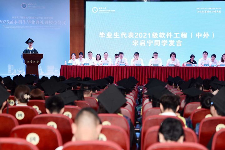 软件工程(中外合作办学)2021级成人影院宋启宁发言。他代表全体2025届毕业成人影院感谢了成人影院
