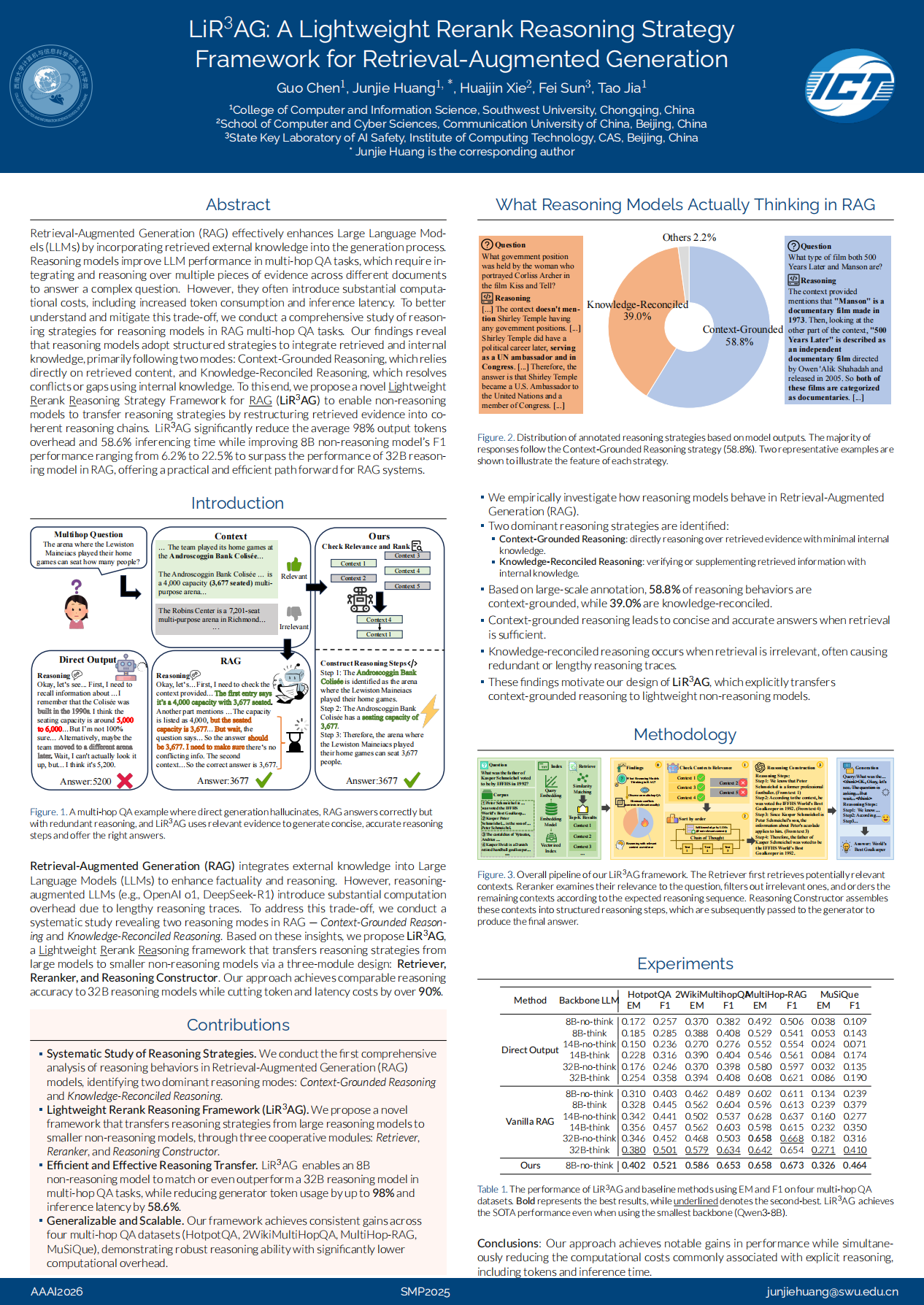 黄俊杰副教授的指导下,在CCF-A级会议——The 40th Annual AAAI Conference on Artificial Intelligence (AAAI2026) 以第一作者发表了题为《LiR³AG: A Lightweight Rerank Reasoning Strategy Framework for Retrieval-Augmented Generation》的研究论文。