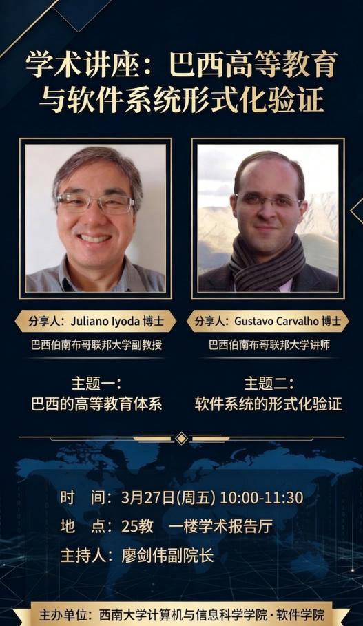 Juliano Iyoda 博士现任巴西伯南布哥联邦大学(UFPE)信息中心副教授。他于2006年获剑桥大学计算机实验室博士学位,曾任联合国大学国际软件技术研究所(中国)研究员。主要研究方向为形式化方法在软硬件设计中的应用、自动推理(尤其是HOL定理证明系统),以及软件测试。他在形式化验证领域有长期研究积累,并参与了多项国际合作。