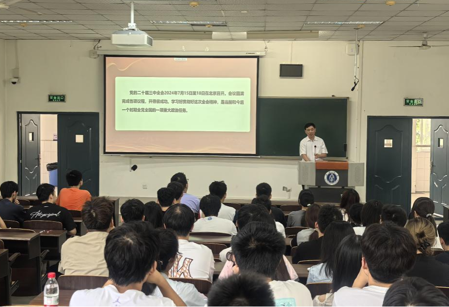 2024年9月26日上午,成人影院 党委副书记潘洵教授为成人影院 2024级软件工程(中外合作办学)专业同学专题讲授形势政策课,授课内容为学习贯彻党的二十届三中全会精神和全国教育大会精神。课堂上,潘洵老师首先讲解了党的二十届三中全会的重要意义,分析了习近平总书记在全会上的重要讲话精神。他表示,习近平总书记在全会上发表的...